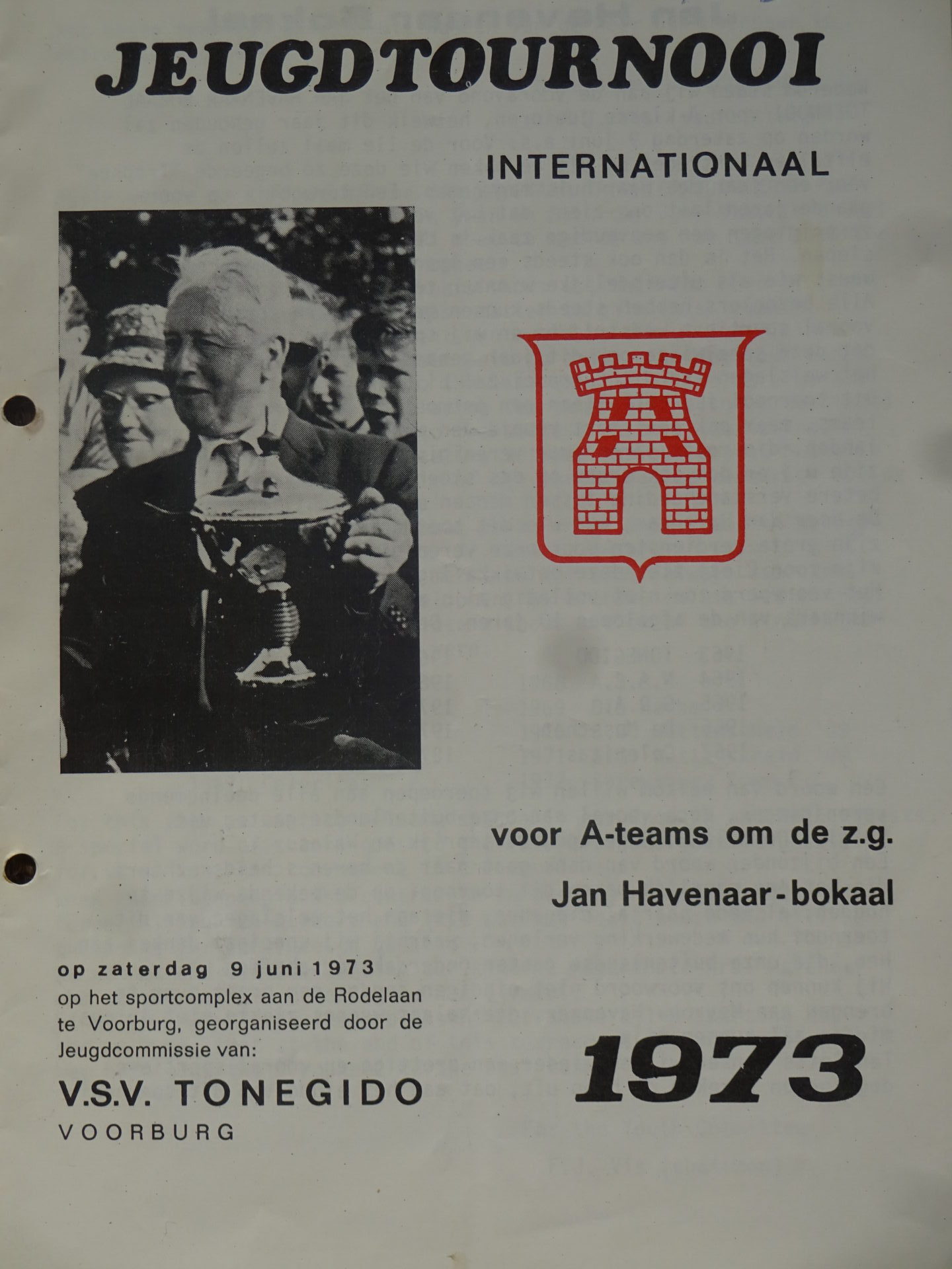 Op deze site hebben we al eerder aandacht geschonken aan het Jan Havenaar jeugdtoernooi waarmee Tonegido in 1962 begon. De redactie bezit het toernooiboekje uit 1973. De buitenlande deelnemers zijn in dat jaar: KFC Verbroedering Arendonk (België), SC Melk (Oostenrijk), Shrewsbury Town (Engeland), Hoogstraten (België), SC Wattenscheid (Duitsland) en Welshpool Youth Center (GB, Wales).