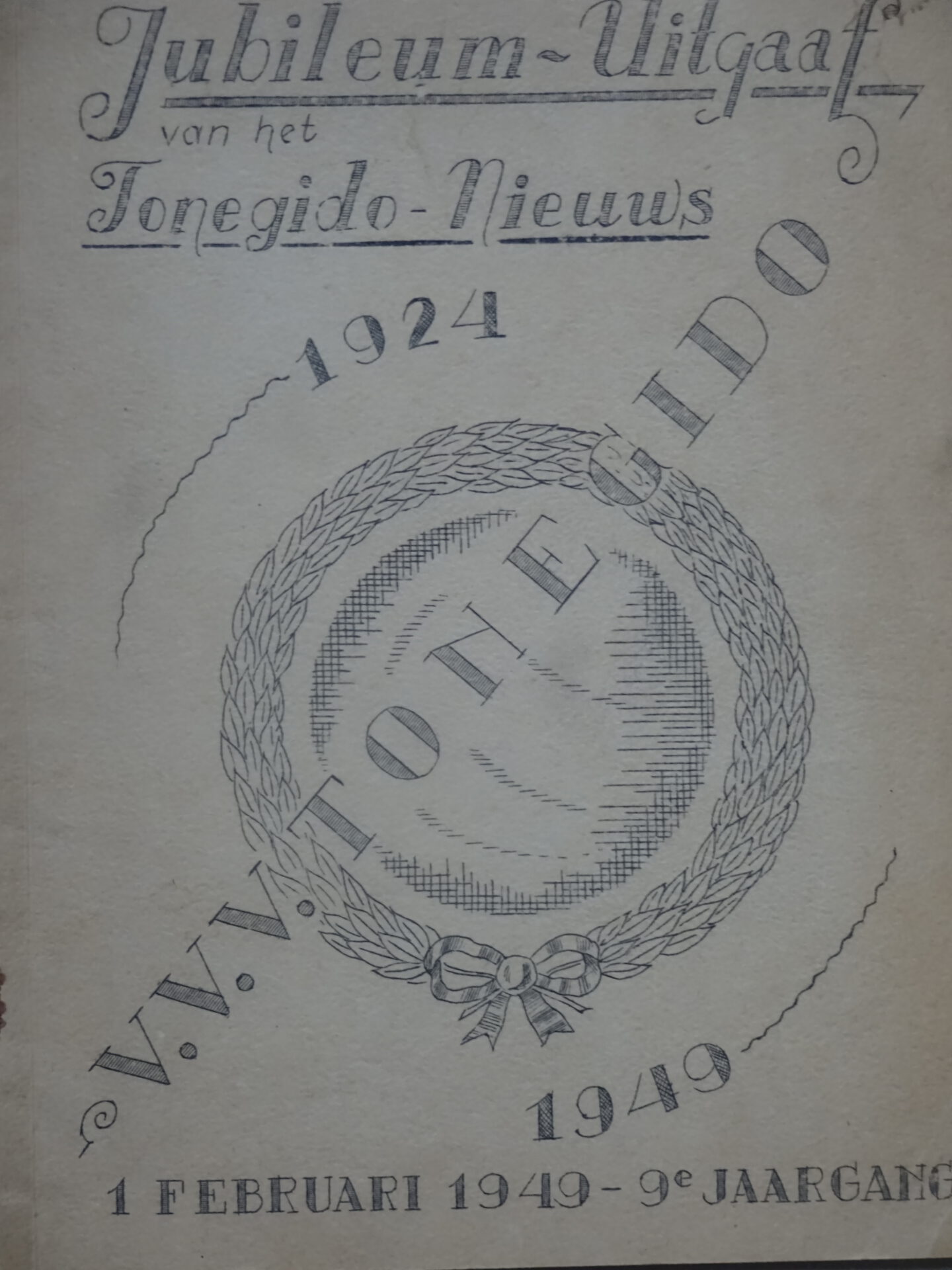 Ter gelegenheid van het 25-jarig bestaan in 1949 gaf Tonegido een Jubileum-Uitgaaf van het Tonegido-Nieuws uit. Datum 1 februari 1949. De club wordt overigens aangeduid als V.V.V. Tonegido.